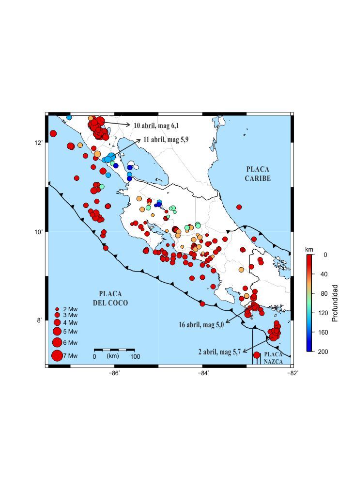 Sismos registrados y sentidos en Costa Rica durante Abril del 2014