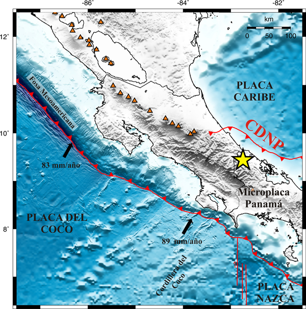 Los sismos recientes más importantes que han ocurrido en esta región limítrofe entre Costa Rica y Panmá sucedieron el 8 de noviembre del 2001 de magnitud 5,9 Mw cerca de Bocas del Toro y el 3 de mayo de 1991 de magnitud 5,4 cerca de Changuinola. La región Caribe de Costa Rica y Panamá también ha experimentado grandes terremotos de magnitud cercana o mayor a 7,0 en 1822, 1904, 1916 y el 22 de abril de 1991 (Terremoto de Limón de magnitud 7,7).