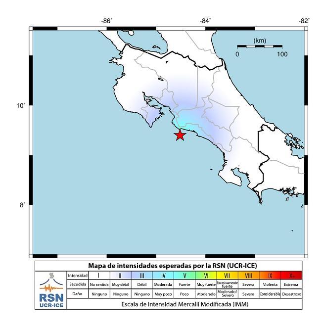 Intensidades: Sentido en Jacó y leve en Parrita y Playa Bejuco.