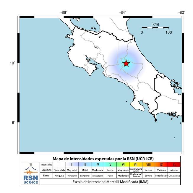 Intensidades: Sentido en Cartago, San José, Cervantes y Ochomogo.