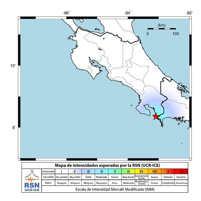Intensidades: Sentido en Ciudad Neily, Pavones, San Vito, Chacarita, Herradura y Jacó.