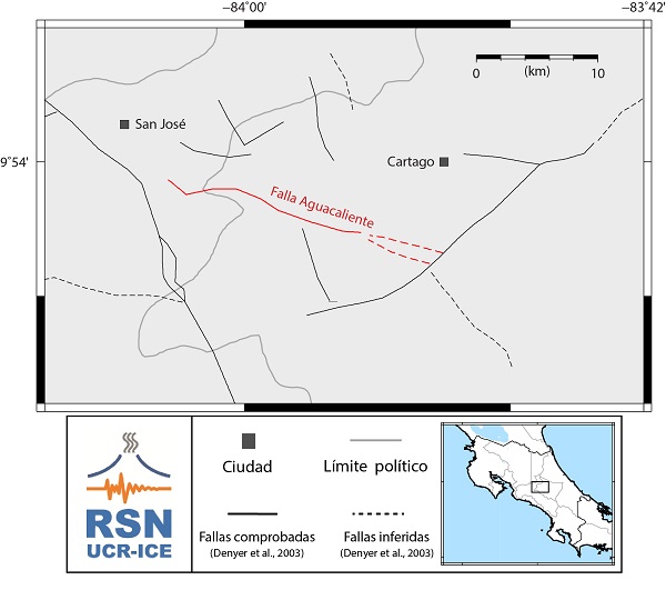 Desde Escazú hasta Santa Cruz de Turrialba, pasando por el sector sur de Desamparados, Tejar, Aguacaliente, sector sur de la Ciudad de Cartago y Capellades de Alvarado. Este es un sistema de fallas que conecta hacia el suroeste con las fallas Escazú, Bello Horizonte, Aserrí y Jericó (Montero et al 2007), y hacia el este se conecta con la falla Capellades, a partir del sistema de transpresión de Cartago (Montero et al 2013).