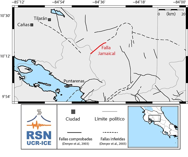 En Villegas (1997) esta falla aparece como un conjunto de alineamientos de rumbo noreste, mientras que Denyer et al. (2003) sugiere que se trata de una falla neotectónica. Por su parte, Rojas (2007) menciona la posible relación entre sismos de baja magnitud y la falla Miramar-Jamaical.