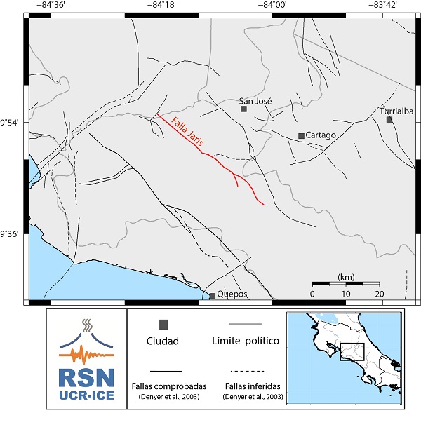 Según la longitud de la falla Jaris de 45 Km expuesta por Montero & Rojas (2014), la misma si rompiera en toda su extensión, podría llegar a producir terremotos con una magnitud de 7.0 Mw.
