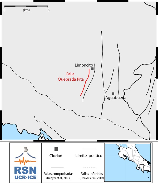 La falla Quebrada Pita tiene una longitud aproximada de 12 km, según lo observado en Denyer et al. (2003) y Arroyo (2001).