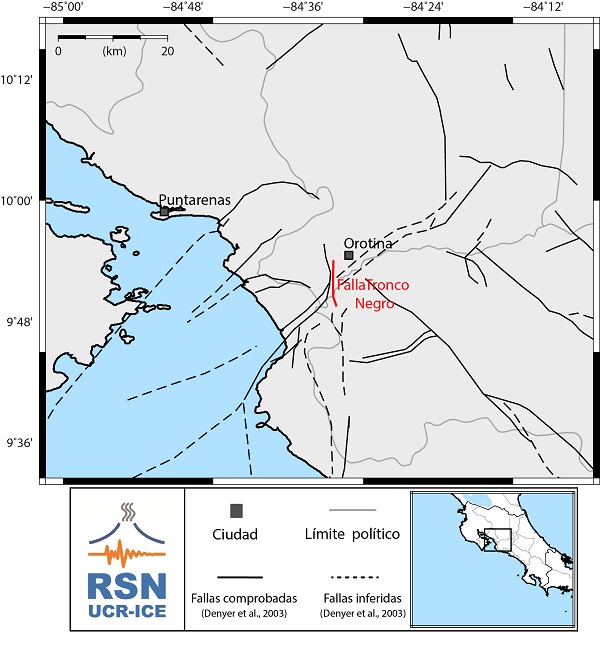 En Montero (1999) se muestra un mapa con la sismicidad superficial de 1996 a 1998, con una concentración de sismos que podrían estar relacionados con esta falla.