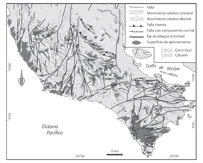 Montero, W. & Denyer, P., 2011: Fallamiento neotectónico de la Península de Nicoya y su relación con el escape tectónico del antearco centroamericano.- Revista Geológica de America Central, 45: 14.