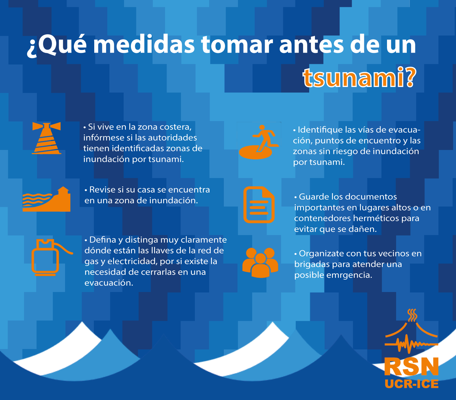 - Esté pendiente de ciertos signos que avisan acerca de la llegada de un tsunami, como el rápido aumento o descenso del agua en la costa.